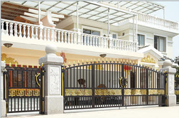 主营:伸缩门、别墅门、护栏、岗亭、路障等产品